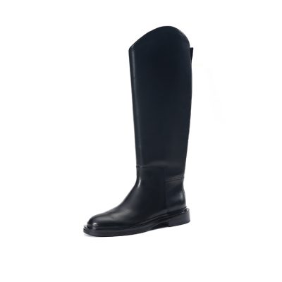 Leather round head slimming western cowboy boots